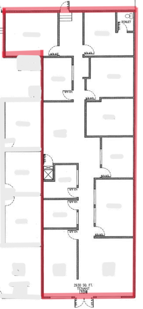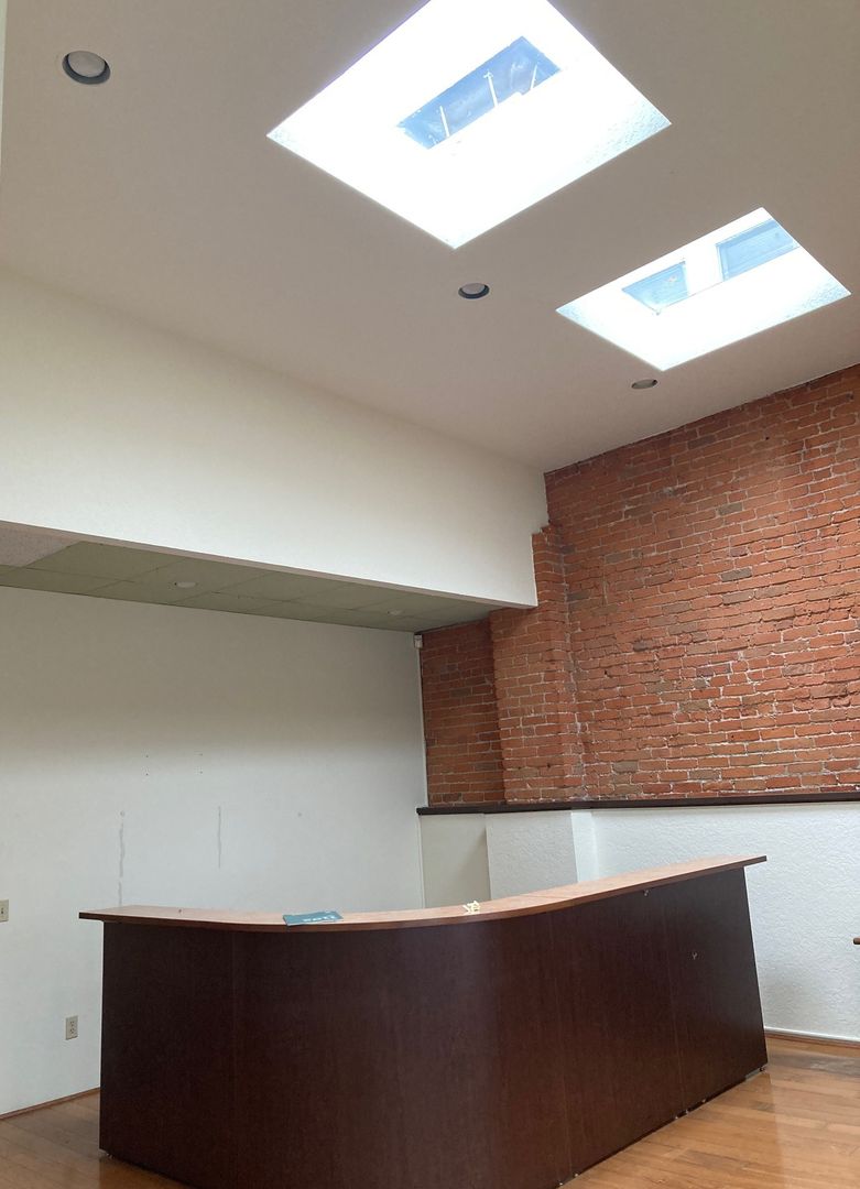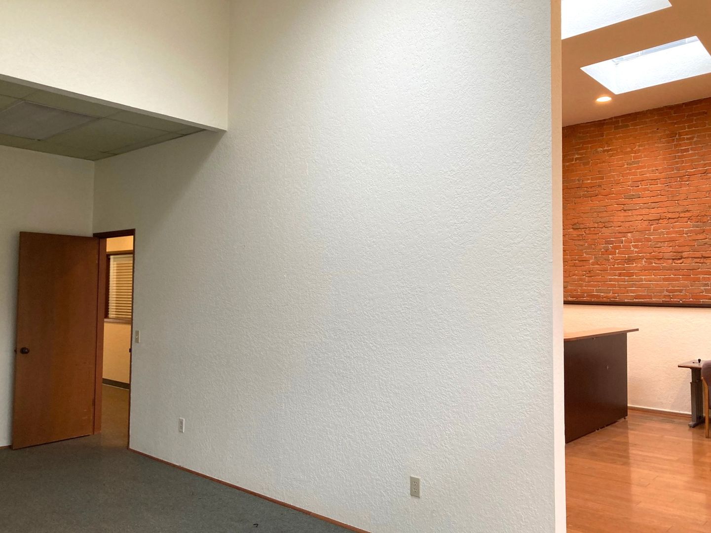 104 Prospect Street is a spacious ground-level suite with large front windows, natural light, exposed brick throughout, and a flexible layout designed to accommodate a wide range of commercial uses. The suite includes nine private offices with doors, multiple open-concept areas, skylights, alley access, and a private bathroom. One office is equipped with built-in storage shelving and counters, while another includes a sink and bathroom, making it ideal for use as a kitchenette or break area. A welcoming reception area at the front of the unit and a central open-concept space provide additional functionality for collaborative or social use.