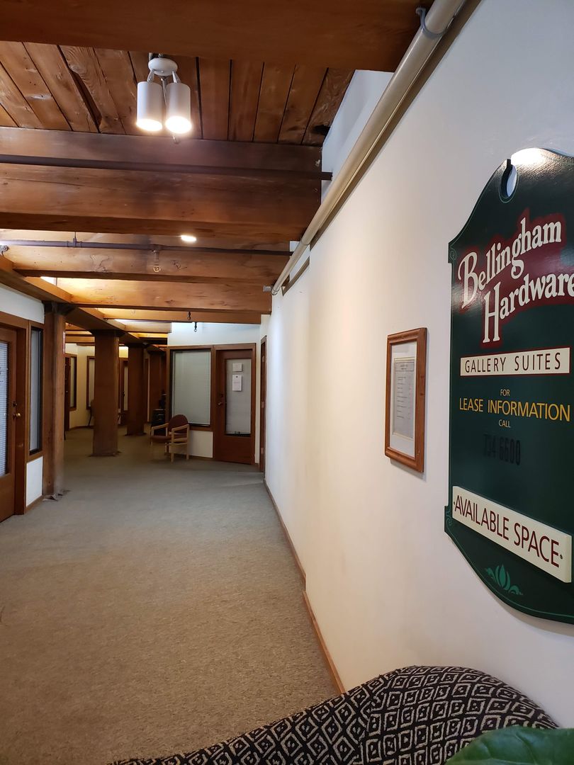 This cozy office suite is located in the gallery level of the Historic Hardware Building in downtown Bellingham. The Hardware Building features high ceilings, natural wood beams and a quiet working environment. The Bellingham Hardware Building is also centrally located and home to many Downtown Bellingham iconic merchants, professionals, private practices and start-up businesses.